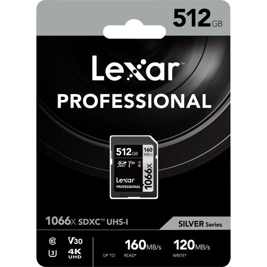 Lexar 512GB Professional 1066x UHS-I SDXC Memory Card (SILVER Series)