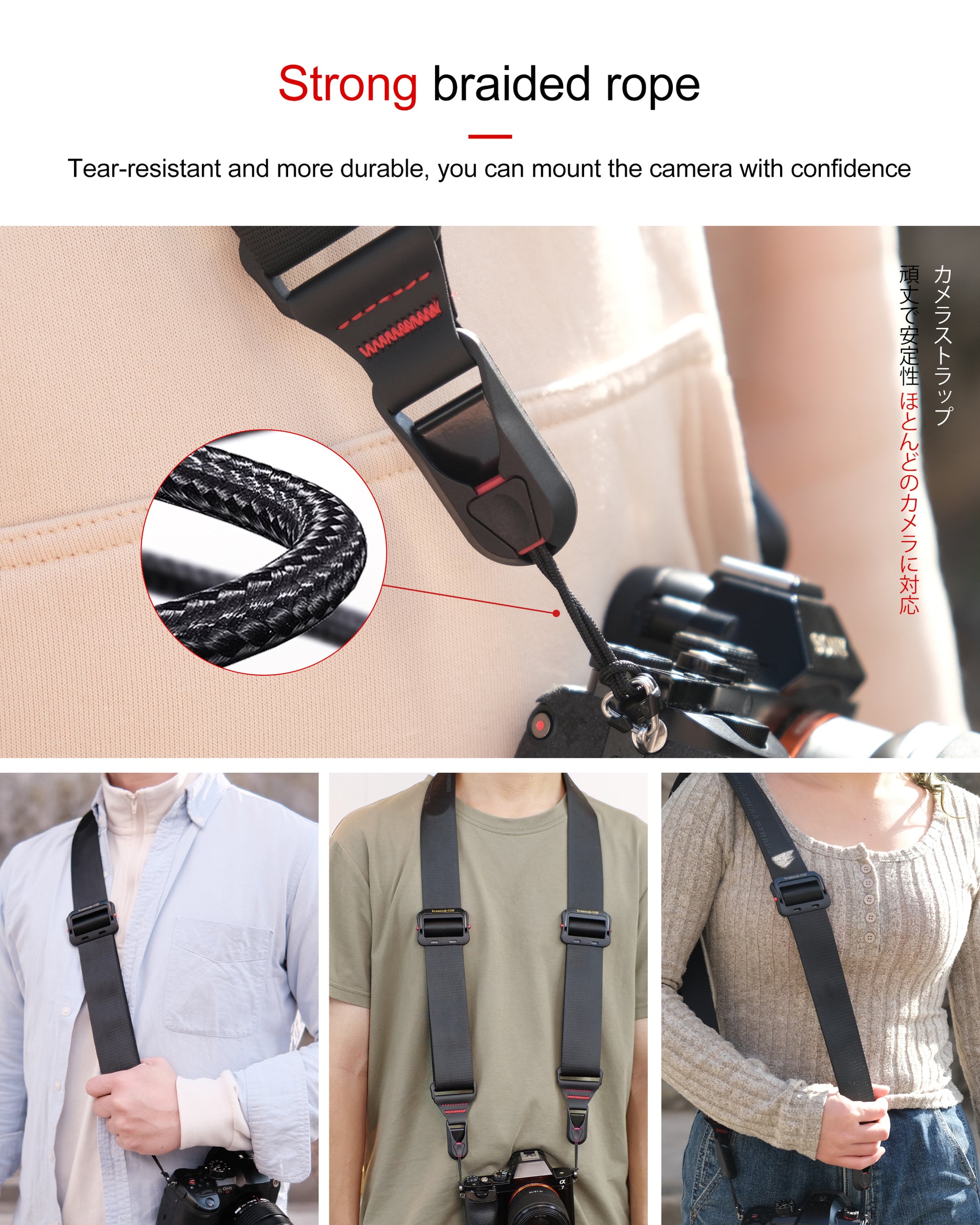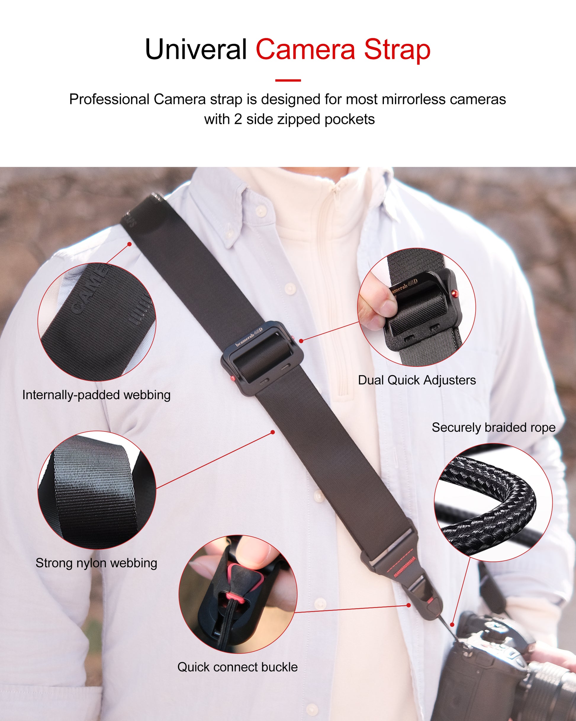Wear in Super stable sling-style,or use as shoulder strap or neck strap.